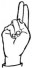 На ћирилици написано РЕЉА СОЈЕВИЋ састоји се из 11 слова [?]. Исписано ћириличном једноручном азбуком за глувонеме: